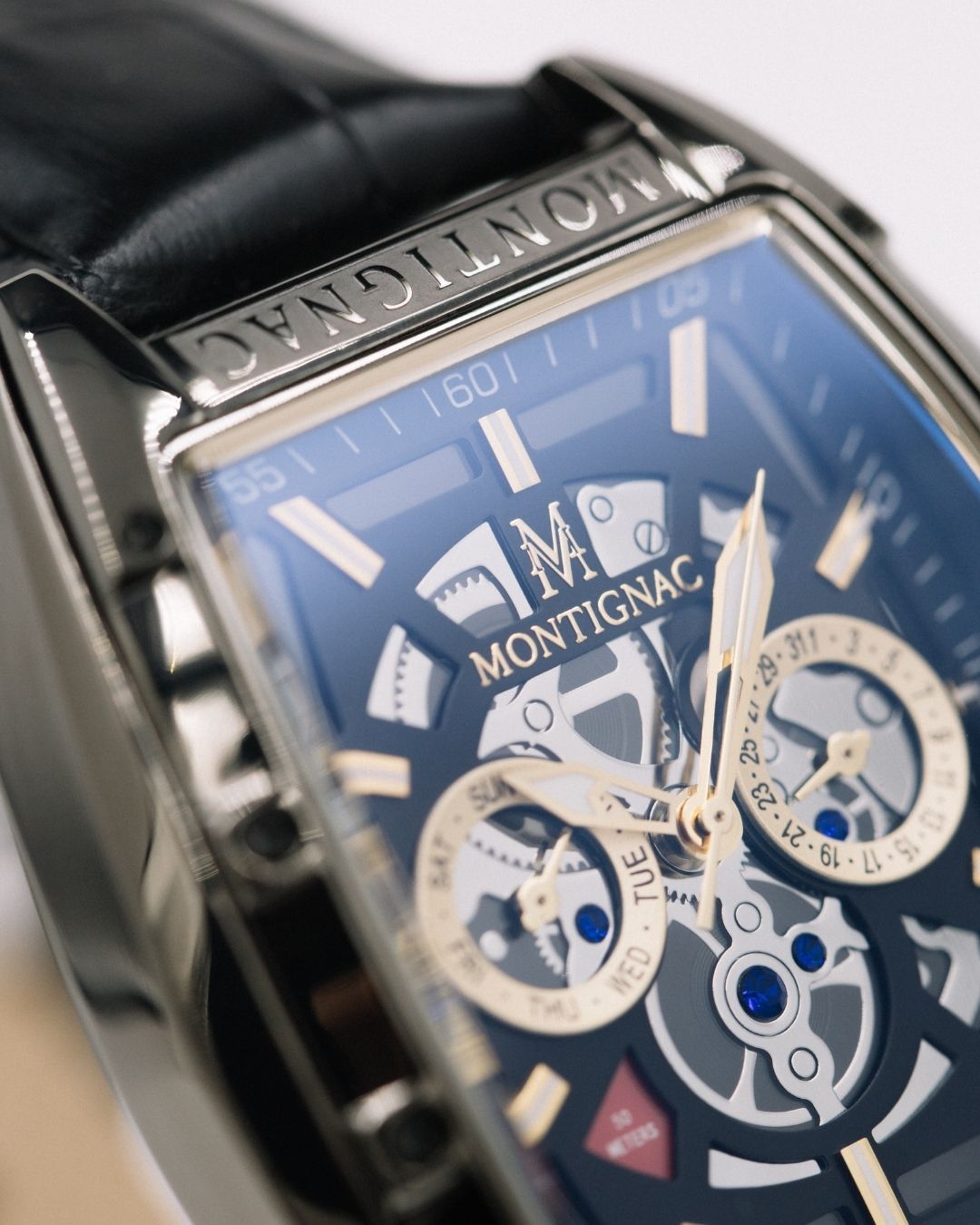 La Montre MONTIGNAC Homme Multifonction MOW702 associe élégance et confort avec son boîtier noir de 53,7x45 mm et son bracelet en cuir noir ultra chic. Son mouvement quartz précis assure un timing au top, tandis que son étanchéité 5 ATM la rend prête à affronter les éclaboussures du quotidien. Garantie 2 ans et pleine de caractère, elle est l’accessoire parfait pour un style audacieux et décontracté !