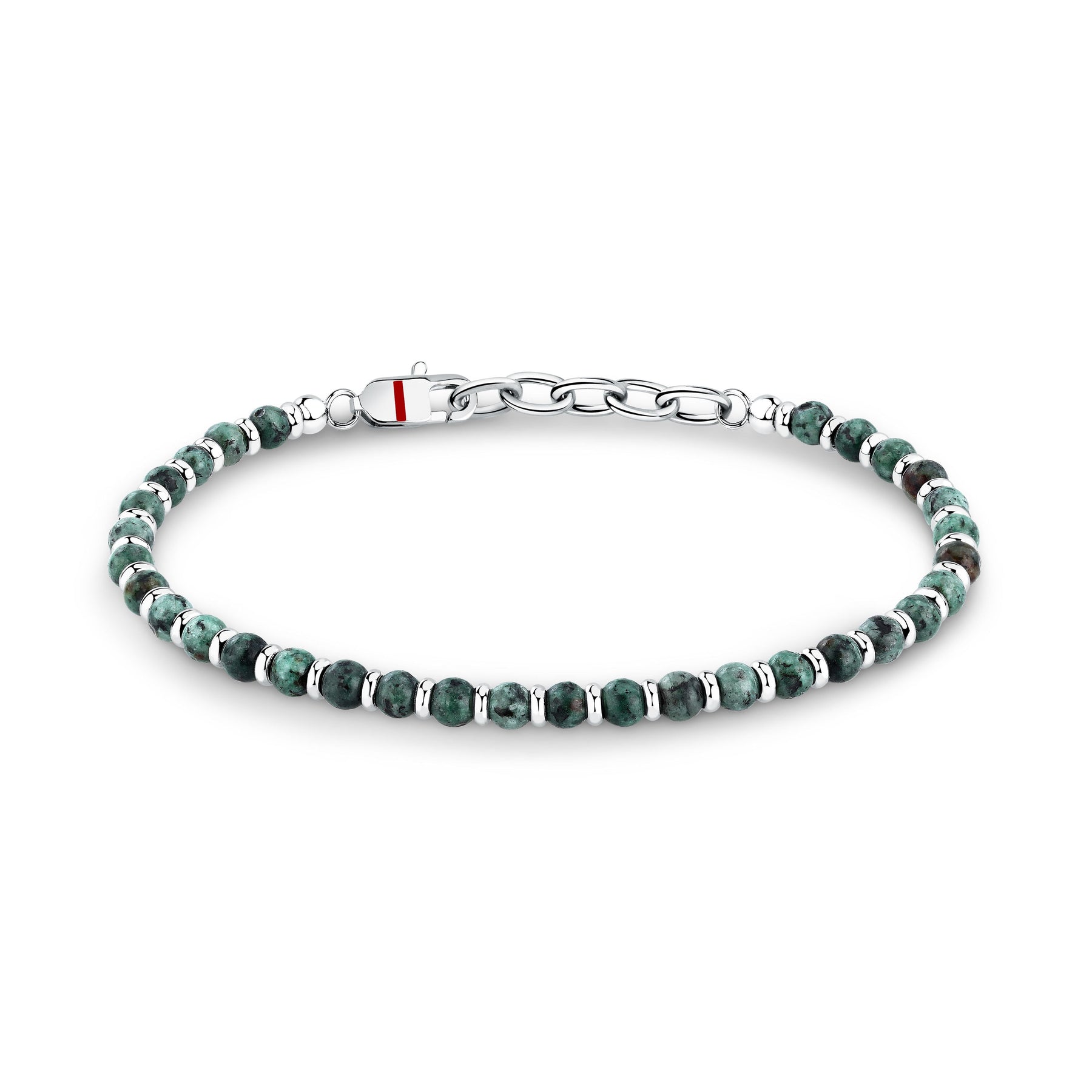 Bracelet SECTOR BIJOUX pour homme aux couleurs nature : vert, argent et marron. Combinant acier et perle, le modèle SZS107 capture l'essence de la sérénité avec une touche d'aventure. Les perles apaisantes dialoguent avec l'acier inoxydable pour créer un équilibre parfait entre douceur et solidité. Un bracelet qui respire l'authenticité et invite à ralentir, même au poignet d'un homme pressé.